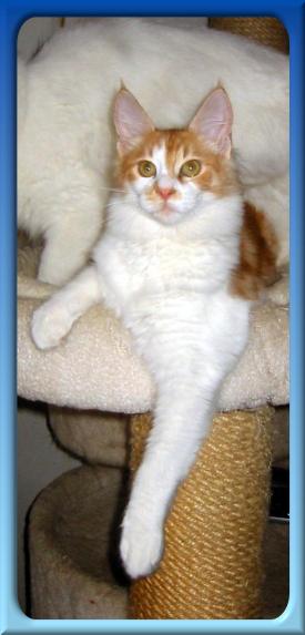 Findus von Morija born 04-08-2001. He has a very beautiful light red smoke + white colour with a great part of white pattern. His coat is nealry perfect and without any undercoat. Findus a a realy great boy but very slender and he has high legs. Thanks a lot to Raphael Pott for this lively boy!