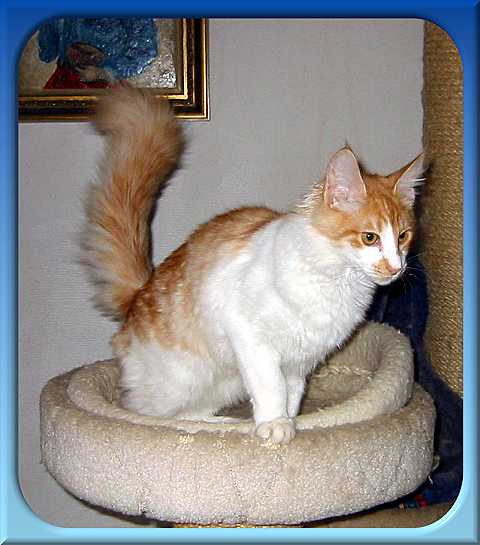 Findus von Morija ist am 13.07.2002 geboren. Er hat eine wundervolle helle red smoke + weisse Farbe mit einem tollen Weissanteil. Sein Fell ist wunderbar seidig ohne jegliche Unterwolle. Findus vereint in sich sehr wertvolle alte Türkisch Angora Linien und einen sehr guten Typ. Ein ganz herzliches Dankeschön an Familie Pott für diesen wunderschönen Kater. | |